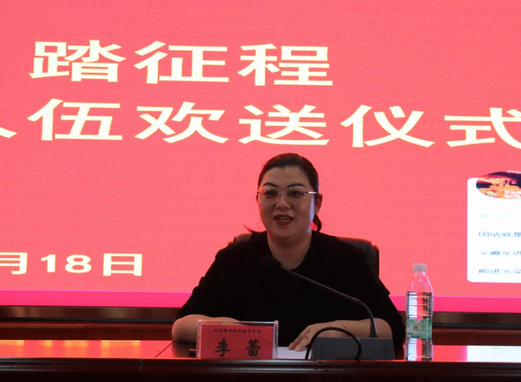 李蕾代表学院全体师生向积极应征入伍的新兵表示热烈的祝贺,向个旧武装部对学校的征兵工作长期的帮助和支持表示衷心的感谢。她谈到人民军队是磨练良好意志、培养祖国保卫者和建设者的大熔炉、大学校,是维护国家主权、保卫国家安全的钢铁长城,在那里不仅能学政治、学军事、学文化,而且能培养良好身体和心理素质,养成吃苦耐劳、不畏艰难的坚毅品格,人生有过当兵的经历将受益终身。