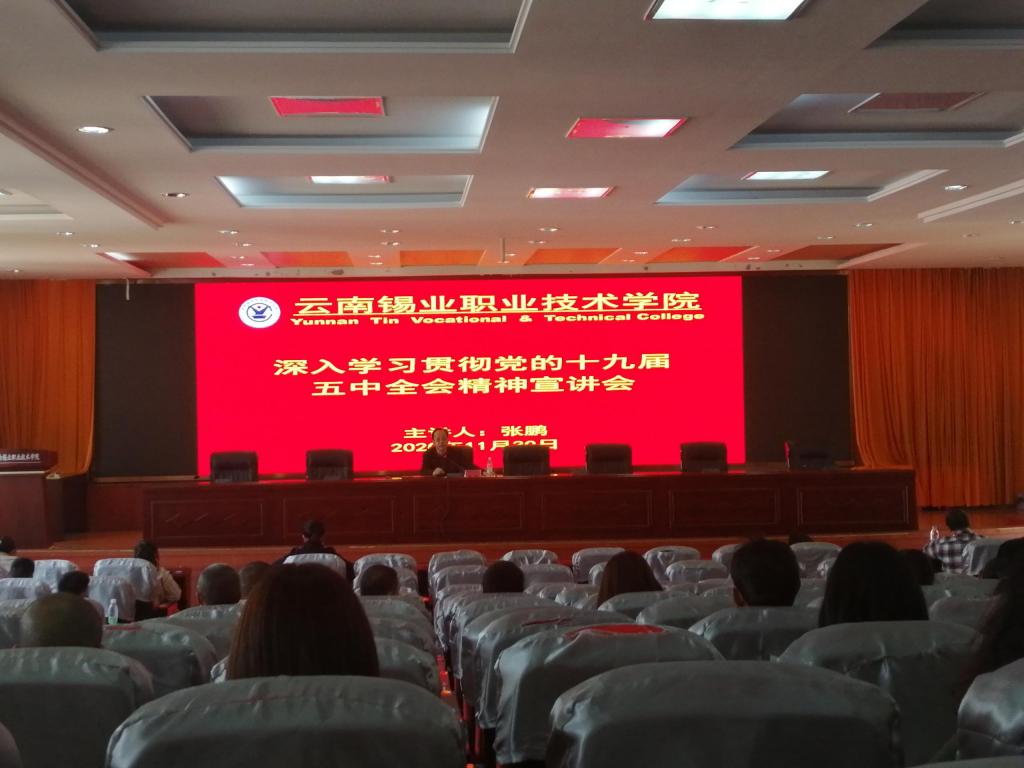 11月30日,学院党委书记张鹏在3号教学楼508报告厅为全院师生宣讲党的十九届五中全会精神。学院领导班子成员、初级以上管理干部以及全院教职工聆听了宣讲会。