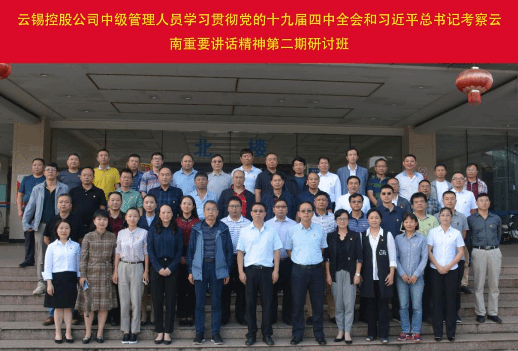 9月11日,控股公司中级管理人员学习贯彻党的十九届四中全会和习近平总书记考察云南重要讲话精神研讨班在云锡职院图书馆4楼培训室开班。控股公司党委副书记姚家立出席开班仪式并作动员讲话。