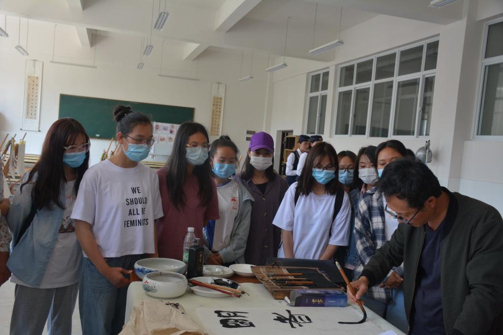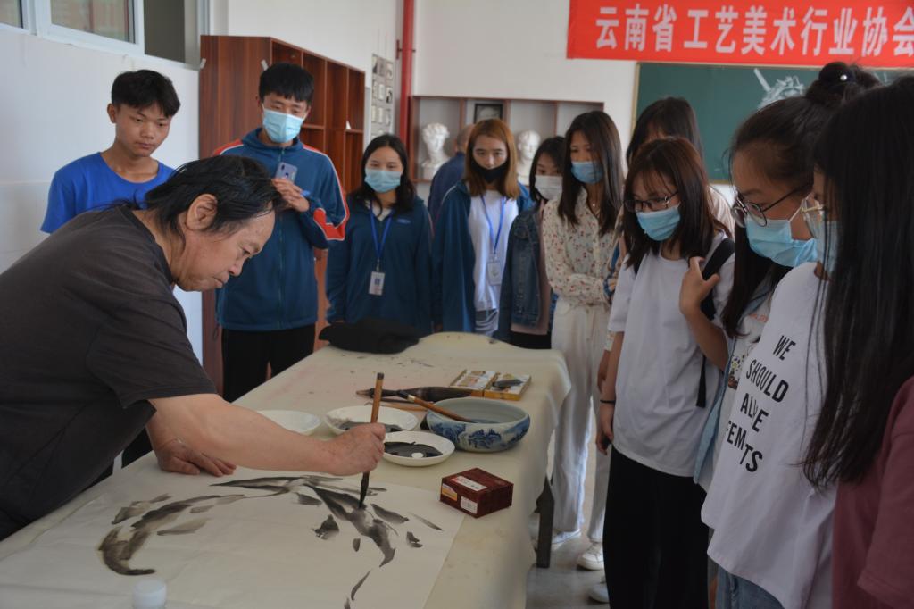 授牌仪式结束后,来自省、州、市的著名书画家们来到云锡职院锡工艺美术学院,以弘扬传统文化,传播书画艺术为己任,挥毫泼墨,献技献艺,创作了一幅幅具有深厚文化底蕴的艺术佳作,赢得了前来参观的广大学子们的喝彩。