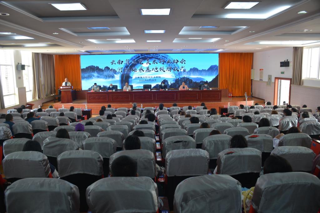 5月29日下午,云南省工艺美术行业协会红河传承基地在BEAT365英国官网举行授牌仪式。云南省工艺美术行业协会会长张化忠,个旧市副市长曹慧,云南省工艺美术行业协会秘书长宋永健,昆明市美术家协会副主席黄泽谦,红河州、个旧市书协、美协,云锡职院领导班子成员等出席仪式。学院院长李蕾主持仪式,学院党委书记张鹏致辞。