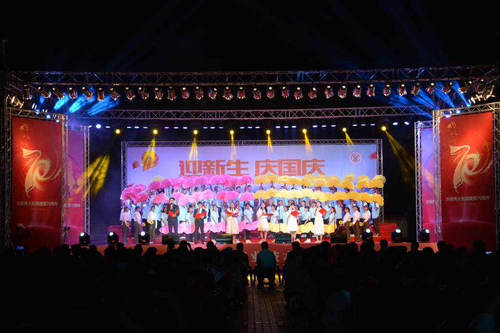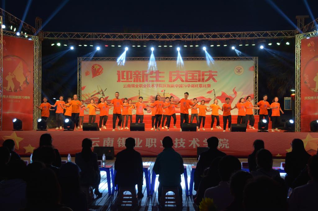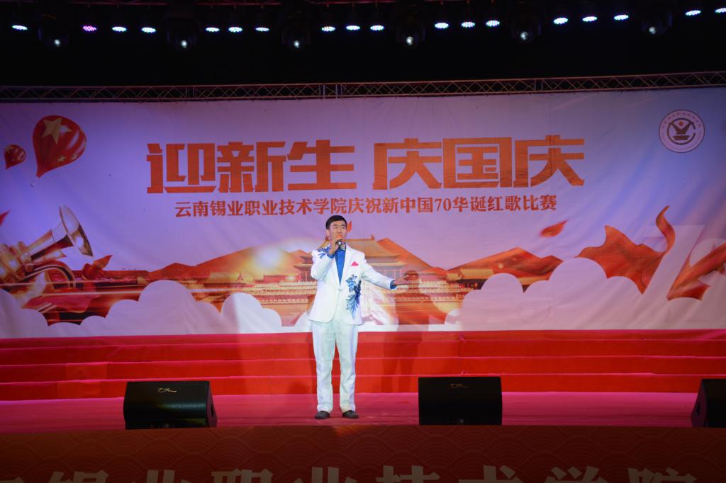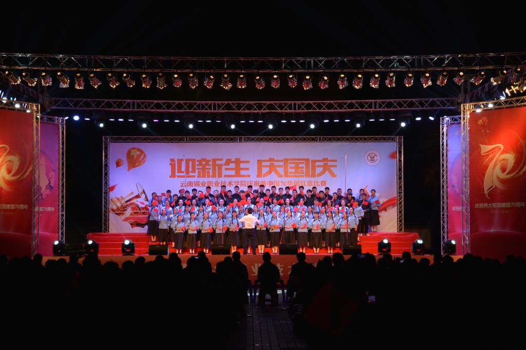 9月27日晚,职业技术学院“迎新生 庆国庆”庆祝新中国七十华诞红歌比赛文艺晚会在学院图书馆前广场隆重开幕,共同回顾70年来新中国取得的辉煌成就。1000余名师生在习近平新时代中国特色社会主义的伟大号角中唱响心中的歌,向祖国告白,向新中国成立70周年献礼。控股公司党委常委、党委副书记姚家立、党委常委、组织人力资源部部长吴君、控股公司工会副主席佴亚阳、交通银行红河分行党委书记、行长马俊龙、个旧市新华书店经理龙静、个旧市乾韵艺术培训学校校长、个旧市古筝协会会长郭平、云南省艺术学院业余音乐等级考核评委、优秀园丁优秀伯乐获得者及国家三级演奏员王锡刚、个旧市青少年活动中心活动部主任杨继芳及学院党政领导班子成员及云锡控股公司各直管单位的党群部门有关领导出席晚会并共享节目盛宴。