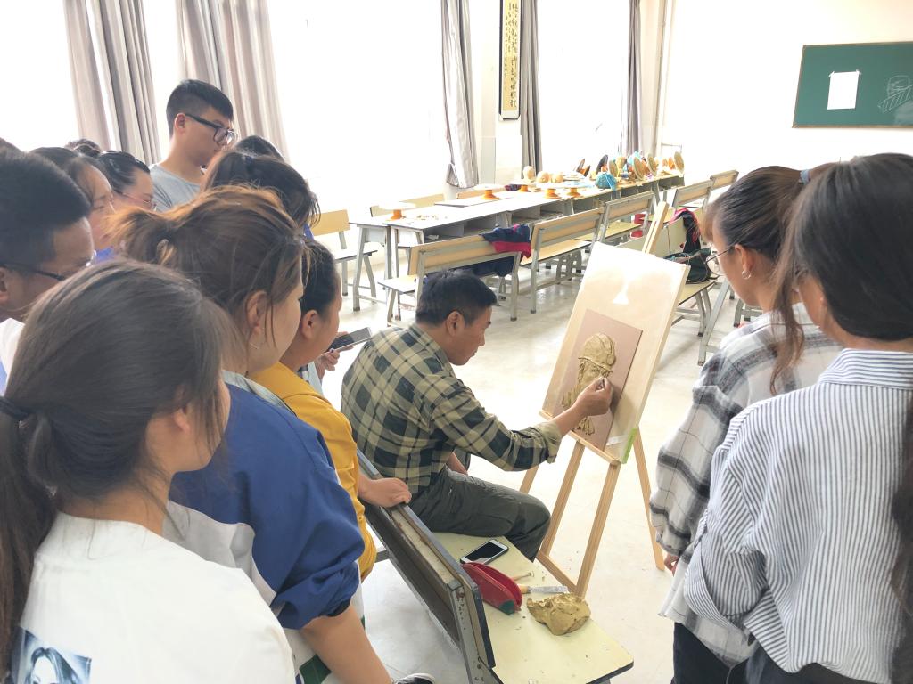 钱曼辉老师从如何制作浮雕、中外工艺品的经典作品赏析等方面的内容,结合自身创作经验和当前工艺品行业与雕塑行业的审美语境,以深入浅出的语言、图文并茂、制作示范的方式展示了工艺品独特的艺术魅力及深厚的美学内涵,给在场大学生带来了一场思想、视觉和听觉的艺术盛宴,受到了听课学生的高度评价,授课现场掌声连连。