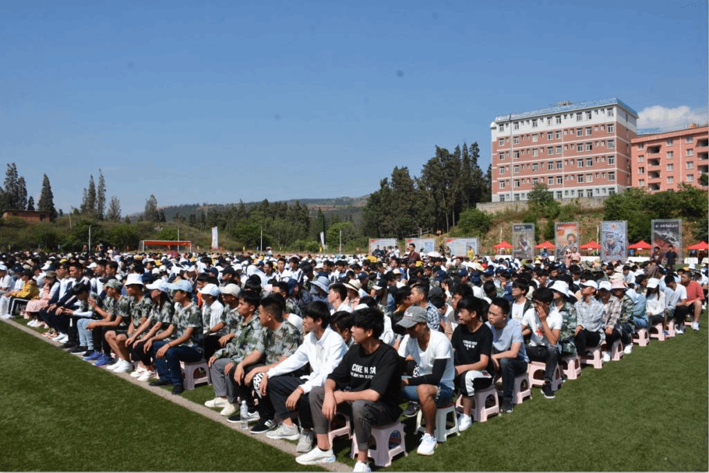 征兵集中宣传报名活动在职业学院运动场举行,启动仪式在庄严肃穆的国歌声中拉开帷幕。红河州征兵领导小组副组长、军分区副司令员陈太文致辞。陈太文在致辞中传达了习近平总书记给南开大学入伍大学生的回信精神,并对红河州各高校对大学生征兵工作所付出的努力给予了充分的肯定。陈太文指出,党中央、国务院、中央军委高度重视大学生征兵工作,先后出台一系列优惠政策措施,一大批优秀大学生参军入伍,壮大了国防力量,有效提高了部队战斗力,希望红河州各高校要高度重视征兵工作,将学习习近平总书记“回信”精神与做好大学生思想政治工作结合起来,解读好政策,加强组织领导,加大宣传力度,做好服务保障工作,弘扬爱国主义精神,动员和引导大学生坚定理想信念,奋发有为,现身国防,实现自身价值。