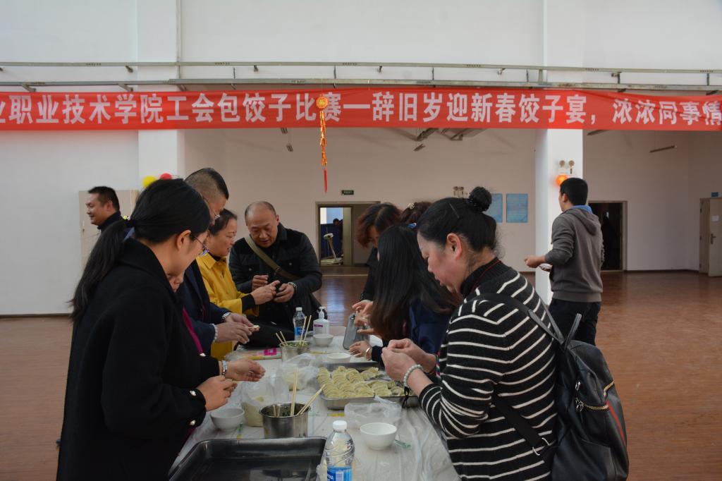 在2019年元旦来临之际,为进一步活跃学院教职工的业余生活,增强了教职工的凝聚力,12月27日下午,职业学院工会组织全院教职工在学生服务中心四楼举行了“包饺子比赛”活动。包饺子活动已成为职业学院“庆元旦迎新春”传统活动,至今已举办了四年。今年的包饺子活动主题是“辞旧岁迎新春饺子宴,浓浓同事情”。