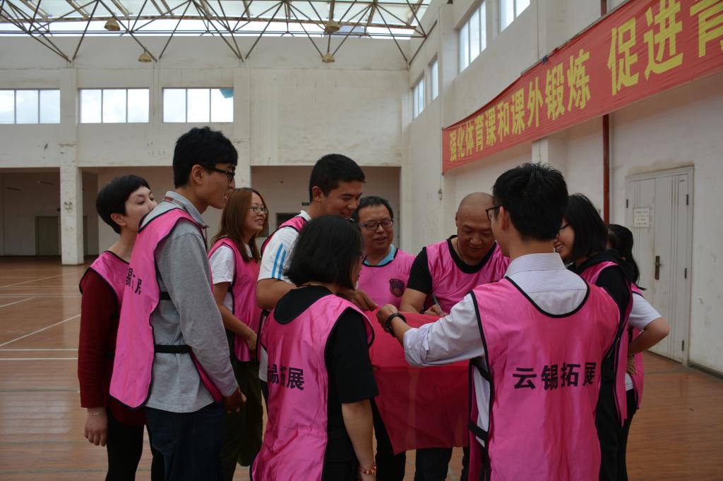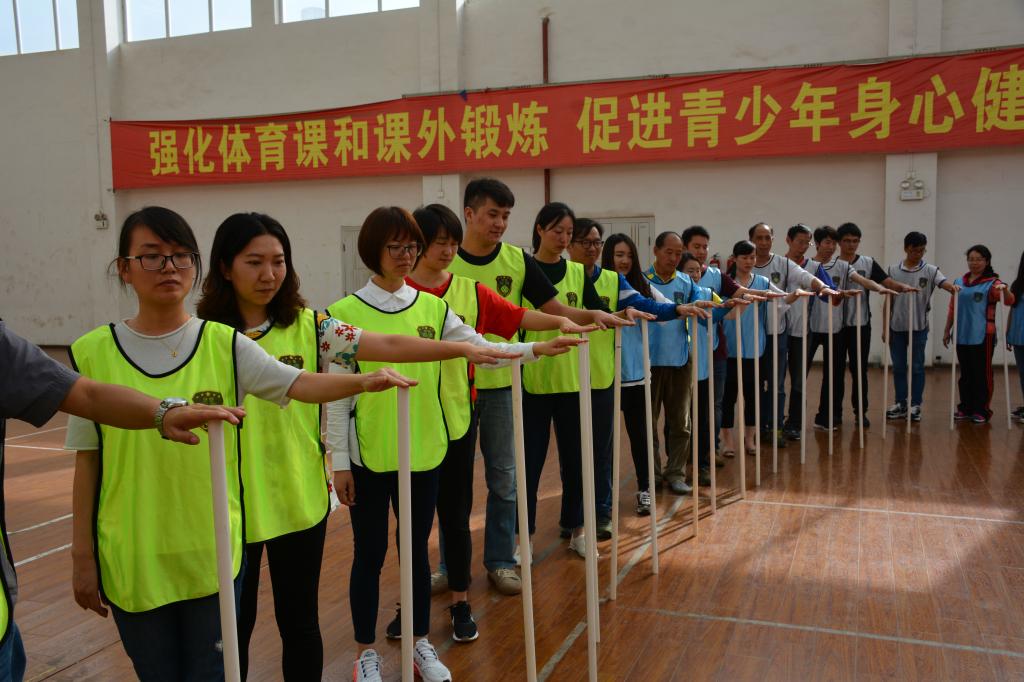 此次教师拓展训练以“团队训练”为切入点,训练包括“拓展介绍”、“暖身锻炼”、“团队建设”、“团队展示”、“集体训练”、“静心冥想”六个环节。