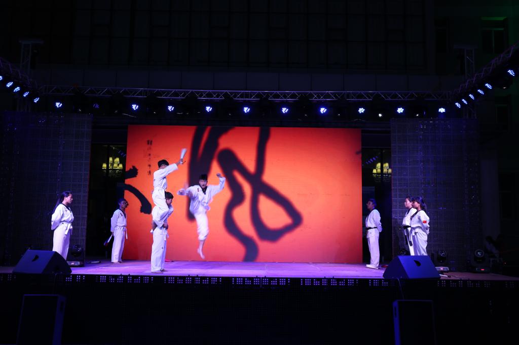 将跆拳道与舞蹈完美融合的跆拳道舞蹈表演《极度澎湃》,展现了学院青年大学生的强健体魄