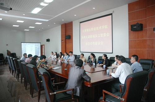 5月12日上午,江苏苏州太湖新城7家星级酒店由吴江管委会人事劳动局副局长游余根带队到职业学院洽谈校企合作事宜,学院常务副院长李建波、党委副书记李梦及相关系部负责人参加会议,会议由学院常务副院长李建波主持。