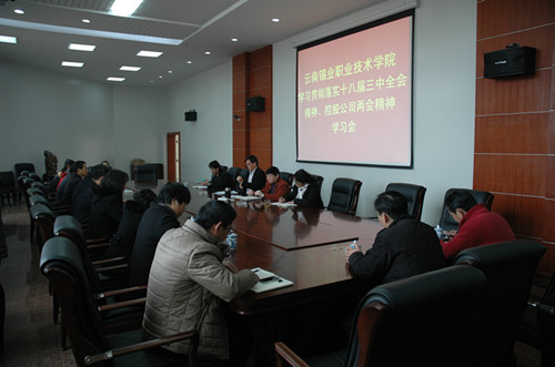 张跃春同志就控股公司“两会”召开的基本情况,“两会”的主要内容作了重点传达及“中国梦、云锡梦”的丰富内涵作了详细说明。最后张跃春同志就学院“两会”精神的学习作了部署安排。一是要全面系统创造性地贯彻落实好控股公司“两会”精神。二是增强责任感,以大无畏的精神深化体制改革,实现学院健康持续发展。三是科学谋划来年工作,为创建省级特色骨干院校的启动做好充分的准备。四是坚定信心,勇于创新,使学院发展再上一个新台阶。