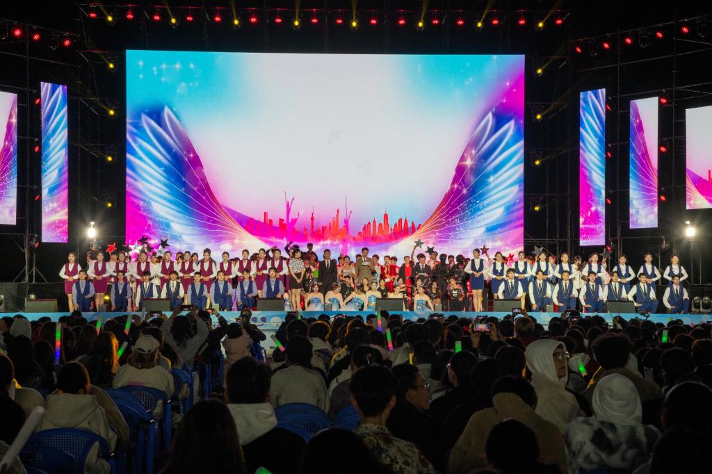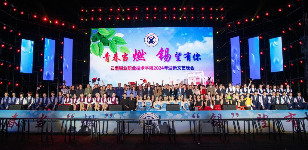 为热烈庆祝中华人民共和国成立75周年,热忱欢迎2024级新同学的到来。11月12日晚,学院在田径运动场隆重举行“青春当‘燃’‘锡’望有你”2024年迎新生文艺晚会。个旧市副市长、个旧市政协副主席、红河州第三人民医院、共青团个旧市委书记、个旧市消防救援局、个旧市公安局锡城派出所、蒙自警星学校、联通公司、新华书店等单位相关负责人与学院4000余名师生一起观看演出。