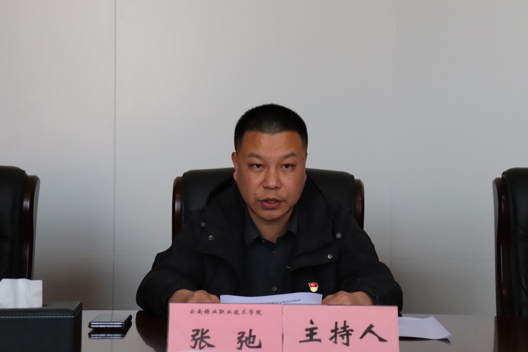 学院党委副书记、工会主席张弛主持会议并传达学习习近平总书记关于开展深入贯彻中央八项规定精神学习教育的重要讲话和重要指示精神、中央党的建设工作领导小组会议精神、中办印发的《关于在全党开展深入贯彻中央八项规定精神学习教育的通知》、省委党的建设工作领导小组会议精神及云锡控股公司党委党的建设工作领导小组会议精神。