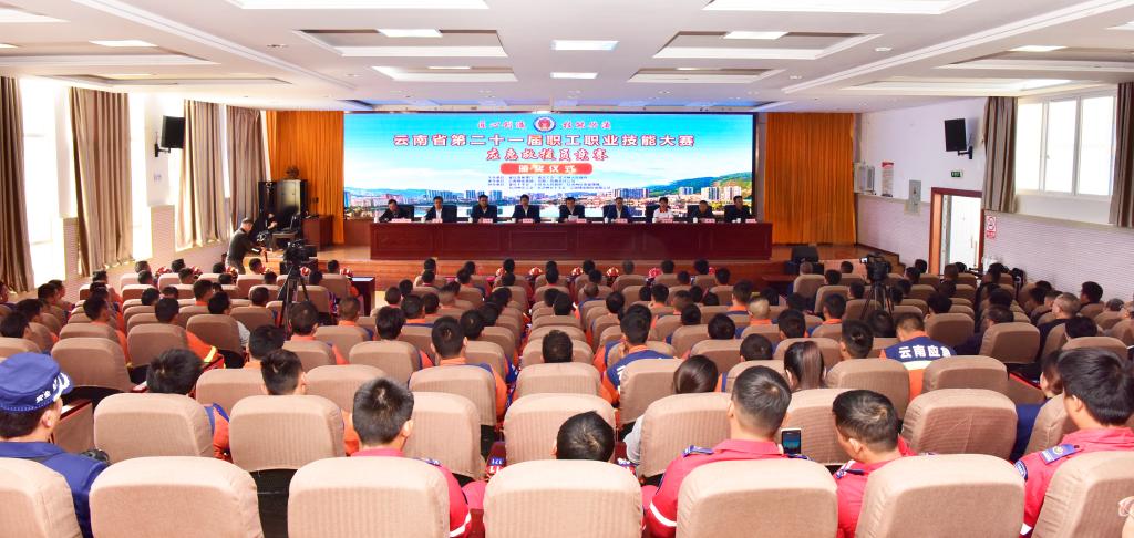 10月27日上午,云南省第二十一届职工职业技能大赛应急救援员竞赛闭幕式在学院508报告厅举行。省应急管理厅党委委员、副厅长王旭斌讲话。控股公司党委副书记、工会主席刘俊,党委委员、副总经理宋兴诚出席。