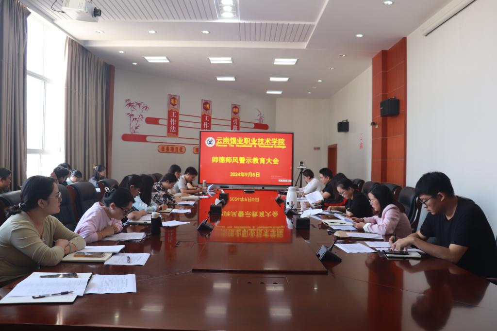 会上,集中学习了《中共中央 国务院关于弘扬教育家精神加强新时代高素质专业化教师队伍建设的意见》《云南省高等职业教育专业综合评价指标体系(试行)》等文件精神;教务科研处牵头组织开展师德师风警示教育;各二级院部、各专业(群)/学科负责人分别汇报了2024年重点工作推进情况;与会人员就做好2024年秋季学期教学工作进行了交流研讨。