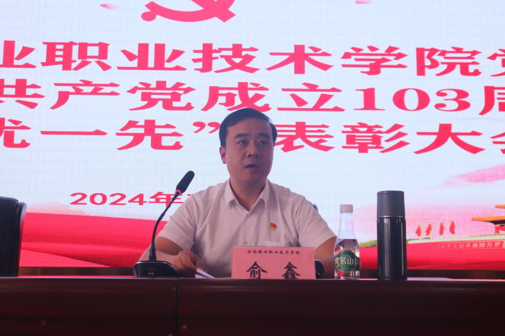 7月1日下午,学院508报告厅隆重举行庆祝中国共产党成立103周年暨“两优一先”表彰大会。