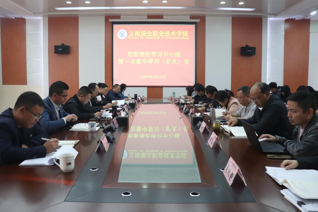 3月18日上午,学院在大会议室召开2024年党委理论学习中心组第一次集中学习(扩大)会,学院党政领导班子成员、各党支部全体班子成员和全体初级管理人员参加会议。