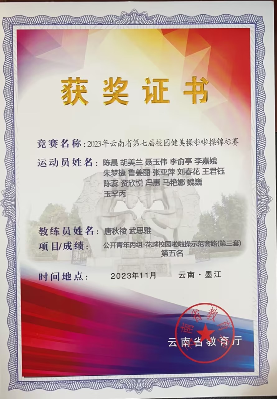 学院16名运动员参加本次比赛,唐秋祾担任领队,在武思雅、唐秋祾两位教练的指导下,学院夺得公开青年丙组《花球规定动作(2020版)-0级》第二名、高职高专组《2018年普及版民族健身操》第四名、公开青年丙组《第三套校园啦啦操示范套路》获得第五名。