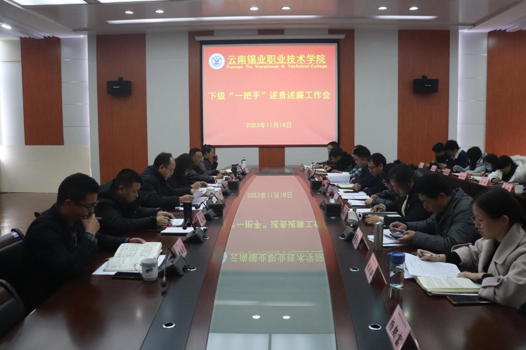 11月16日下午,为深入贯彻落实全面从严治党的战略方针,坚定不移推进党风廉政建设和反腐败工作,切实推动全面从严治党向基层延伸,学院党委(扩大)会在学院大会议室组织开展下级“一把手”述责述廉工作。