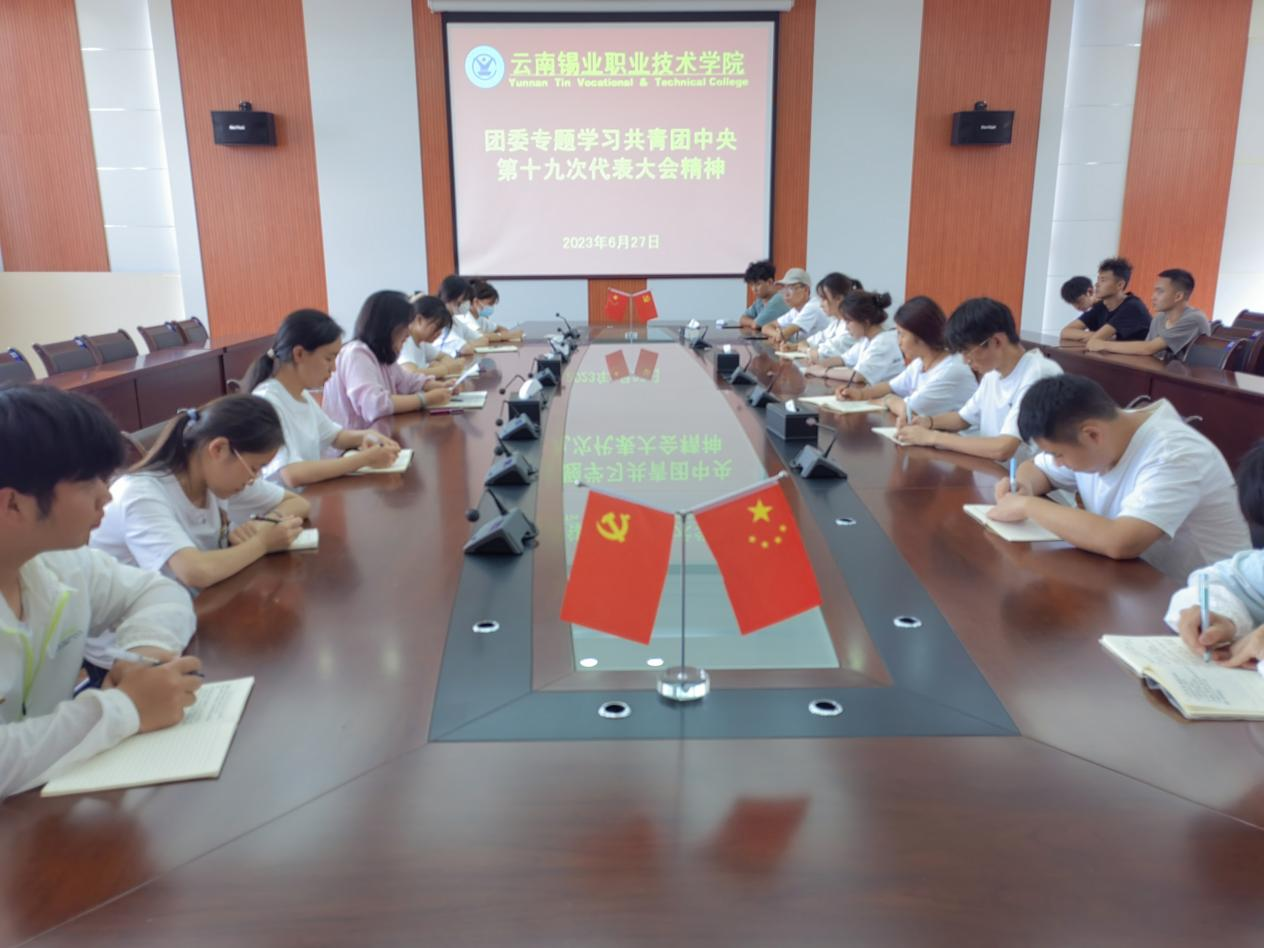 6月27日下午,学院团委在507大会议室专题学习了共青团十九大精神,团委书记李啉汎宣讲了共青团十九大精神,各二级学院团总支书记、团支部书记共21人参会。