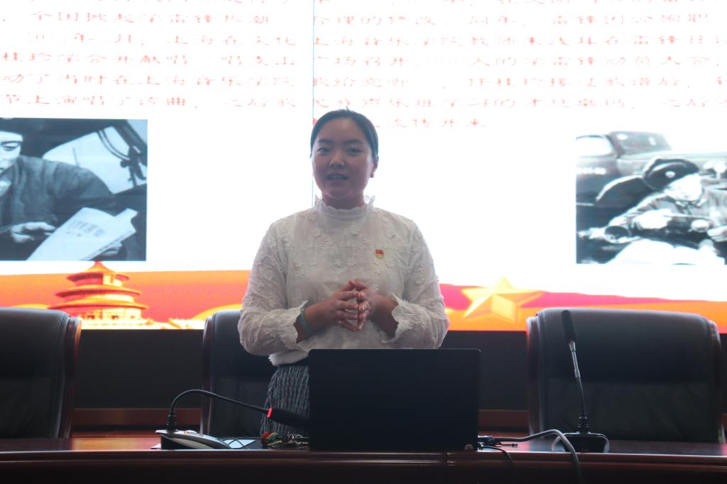活动中,李啉汎逐一展示了《十送红军》《唱支山歌给党听》《春天的故事》《不忘初心》《灯火里的中国》五首红色歌曲,讲述了这五首歌曲背后的红色故事,让在座同学们充分感受到了革命先烈的无私奉献精神。