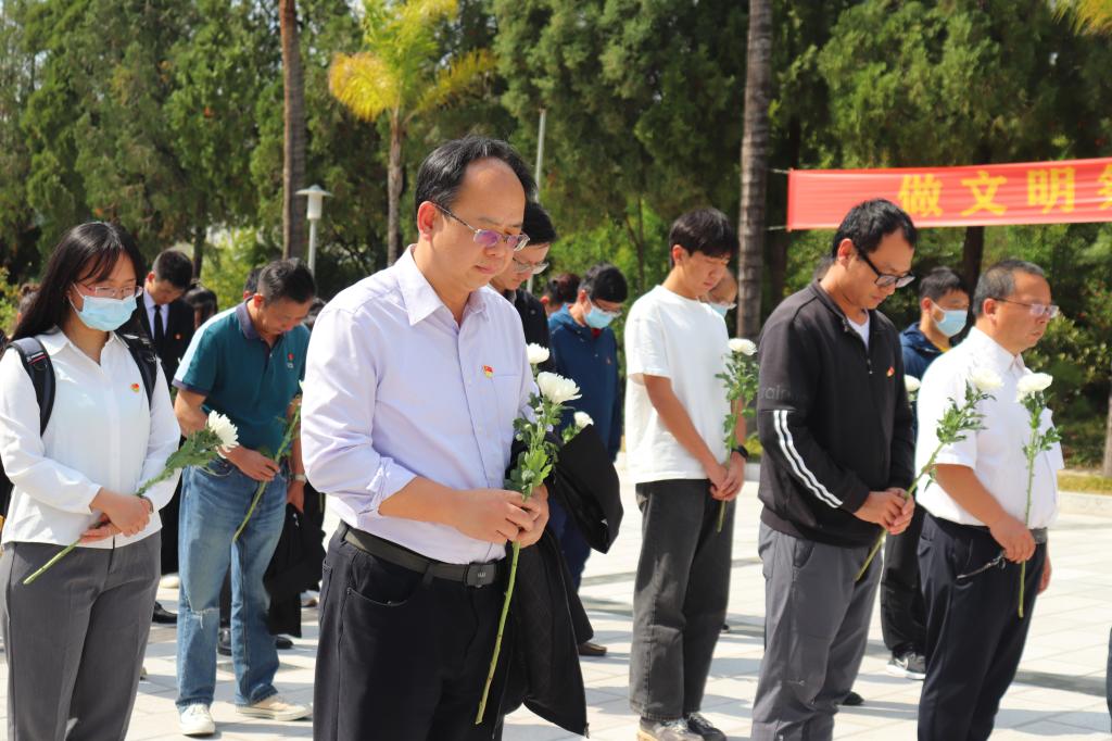 清明祭英烈,初心永不变。4月3日,学院组织党员干部师生代表前往蒙自烈士陵园,开展了“祭奠革命先烈 坚定理想信念”清明扫墓主题党日活动,全体师生共同瞻仰了烈士墓,学习他们的光荣事迹。