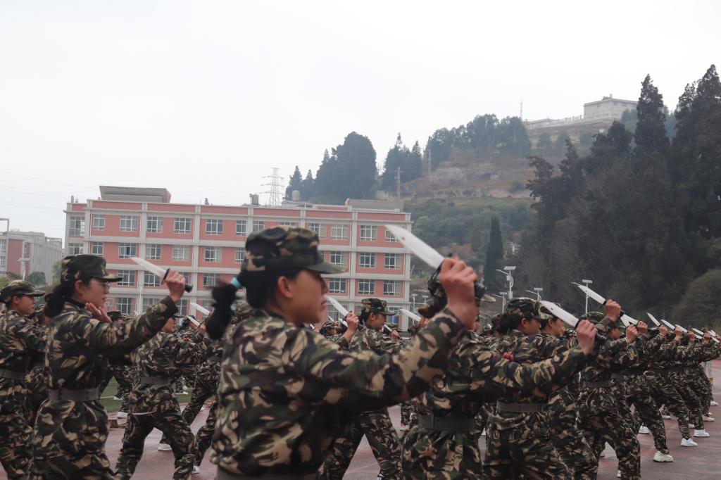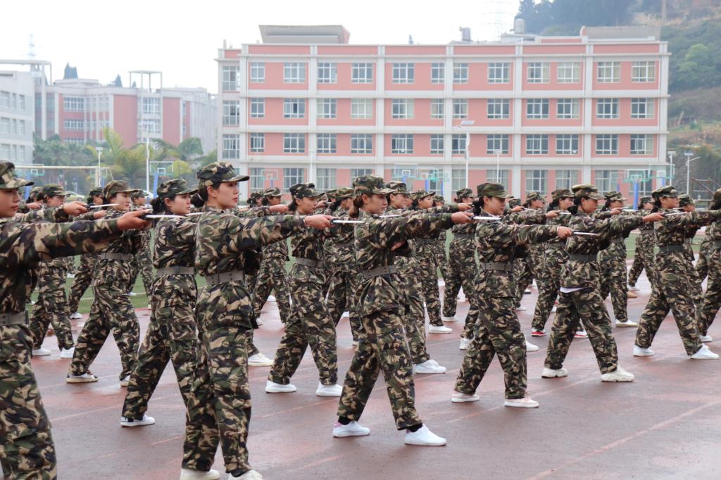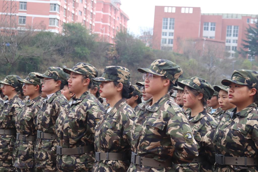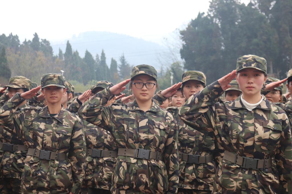 “全体都有”“稍息”“立正”“向左转”“跑步走”……随着教官铿锵有力的口令,同学们动作干净利落、整齐划一,目光如炬,身姿挺拔,展现了“请党放心,强国有我”的决心。