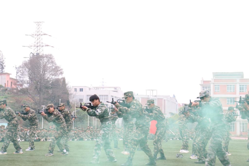 “哪有什么岁月静好,不过是有人替你负重前行”。战术演练将军训汇演推向了高潮,他们端着冲锋枪,匍匐前行,不畏强敌,身姿矫健,脚下生风,动作一气呵成、凌厉有力,尽显青年之勇担大任、豪情满怀。