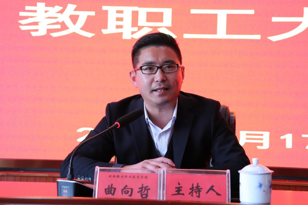 大会由学院党委副书记、纪委书记、工会主席曲向哲主持,学院院长李蕾、副院长张惠芬以及学院教职工参加会议。