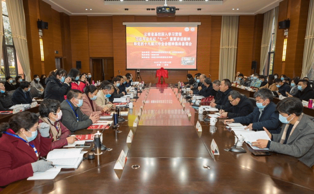 12月25日,由云南省委教育工委、云南省教育厅主办,云南大学承办的云南省高校深入学习贯彻习近平总书记“七一”讲话精神和党的十九届六中全会精神集体备课会在呈贡校区召开。
