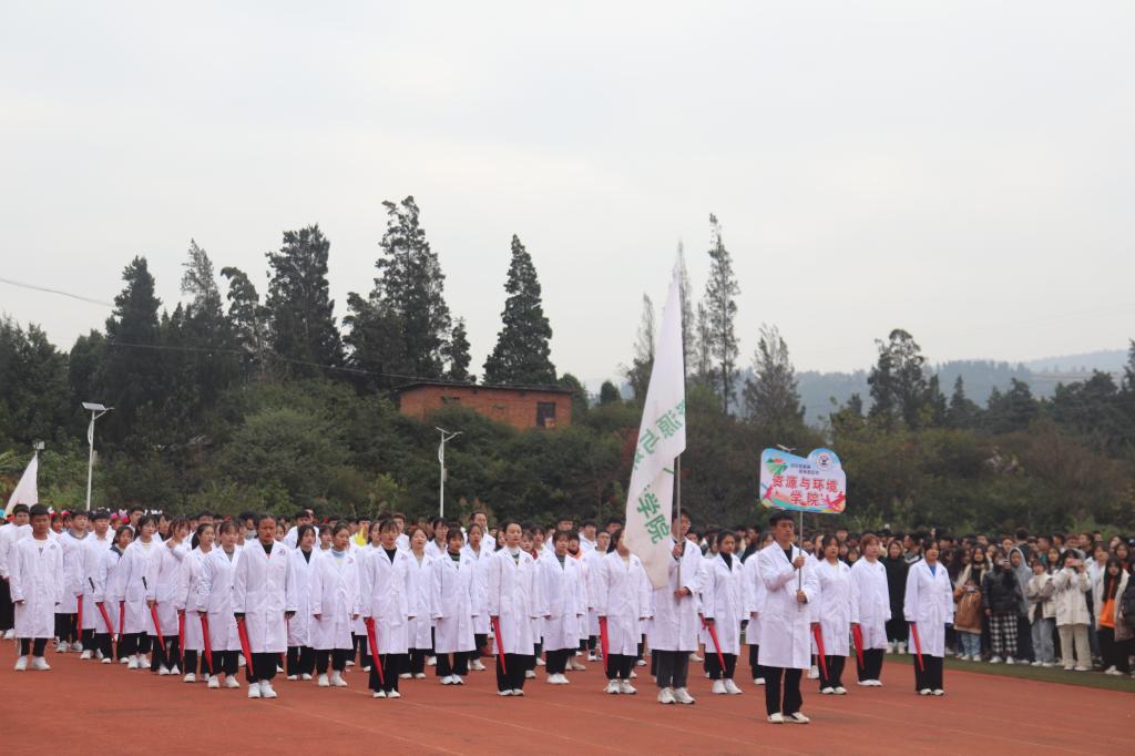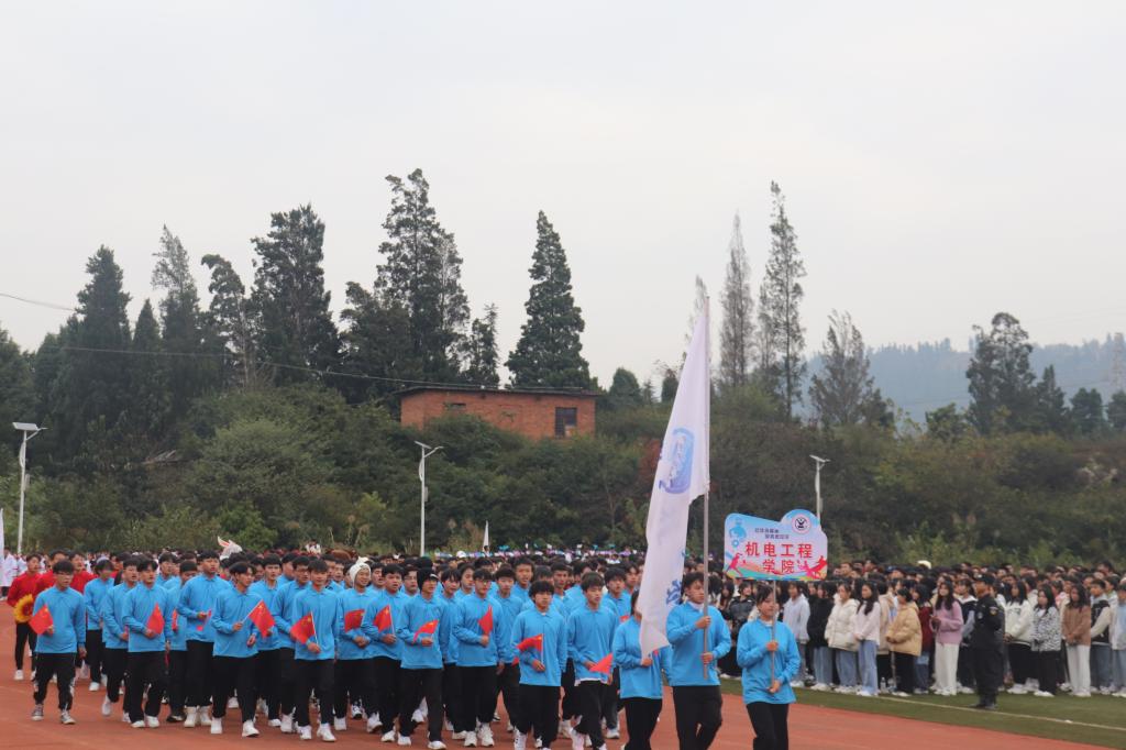 伴随着慷慨激昂的《运动员进行曲》,国旗护卫队、校旗队、红旗方队、二级学院代表队、展演方队依次入场。整齐划一的动作,铿锵有力的步伐,都彰显了学院学子朝气蓬勃的精神面貌和顽强拼搏的精神。