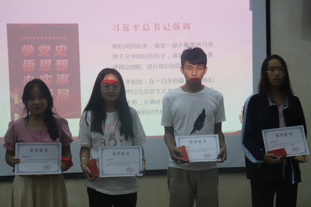 9月18日,学院在图书馆四楼培训室举办“习近平总书记七一重要讲话精神宣讲暨庆中秋读书活动”,深入学习习近平总书记在庆祝建党100周年大会上的重要讲话精神,分享了读书学习心得体会,为在“建党百年 峥嵘岁月”每天30分钟一讲座,21天打卡计划中获奖的同学颁发了证书。