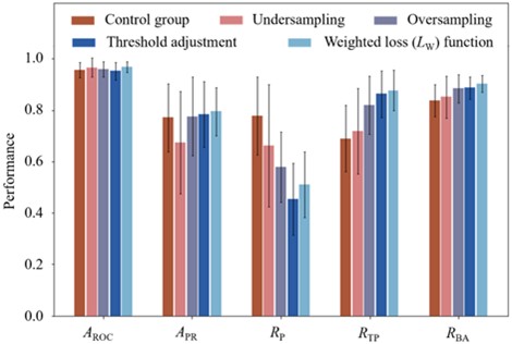图2. 基于各种不平衡数据集建模技术的TL-GAT模型性能。