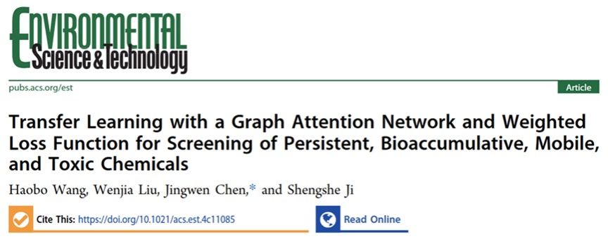 Wang H. B., Liu W. J., Chen J. W., et al. Transfer Learning with a Graph Attention Network and Weighted Loss Function for Screening of Persistent, Bioaccumulative, Mobile, and Toxic Chemicals. Environ. Sci. Technol., 2024, DOI: 10.1021/acs.est.4c11085