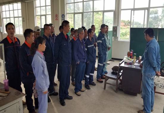 根据控股公司下达的《2018年度云锡集团(控股)公司员工培训计划》通知要求,云锡人才培训中心于2018年10月8日组织“钳工、电工、焊工职业技能高级技师培训班”学员,按培训大纲要求,到学院实训中心进行实操训练前的安全培训,实训中心王老师和培训处何老师、秦老师、张老师分别对学员作实操上岗前安全知识讲解。