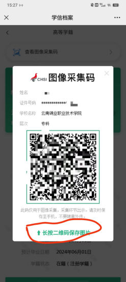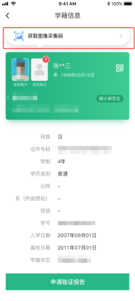 全日制学生的采集码在毕业前一年的1月1日之后生成可下载。成人教育学生的采集码在毕业注册后生成可下载。有效期1年。