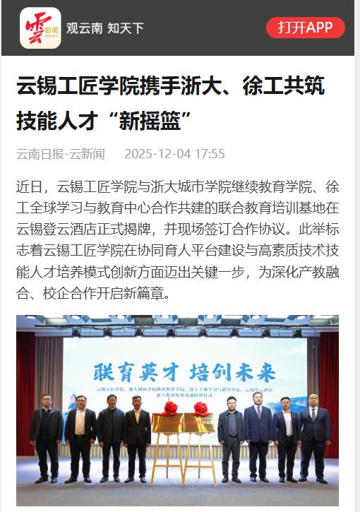 云南日报:BEAT365英国官网携手浙大、徐工共筑技能人才“新摇篮”