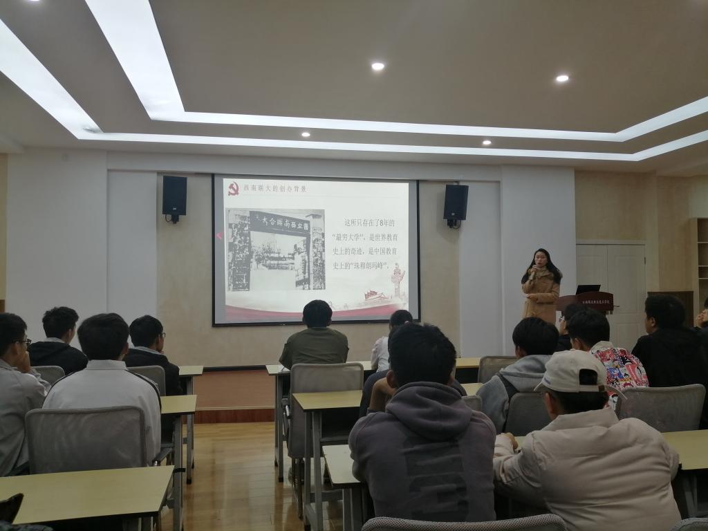 11月18日,学院进一步组织开展“党的故事进校园”活动,思政部教师在图书馆培训室专题宣讲了西南联大教育救国的故事,来自各二级学院近90名师生聆听了故事。思政部施亚坪老师从西南联大的创办背景、历史故事、救国精神等方面进行了深入浅出的讲述,她谈到,“烽烟万里踏征程,桢干移枝到春城;茅草为顶遮雨露,土泥作室听书声;笳吹弦诵依前彦,继晷焚膏望后生……”1937年全面抗战爆发后,北大、清华、南开三校被迫南迁,迁至...