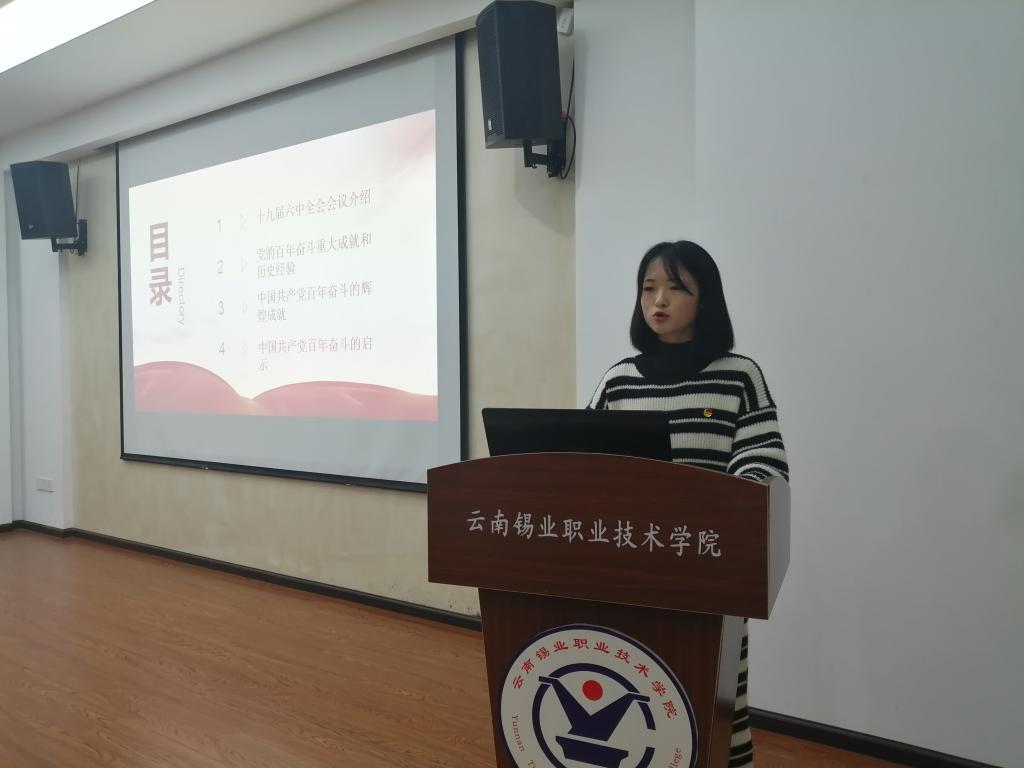 11月18日,学院在图书馆培训室组织开展了十九届六中全会精神宣讲活动,大学生理论宣讲团、思政部教师、各二级学院师生共同学习和聆听了十九届六中全会精神。大学生理论宣讲团团长吴凤围绕十九届六中全会会议概况、党的百年奋斗重大成就和历史经验、中国共产党百年奋斗的启示等方面进行宣讲。宣讲团成员分享了学习十九届六中全会精神的心得体会,表示要深刻领会党的十九届六中全会的现实意义和历史意义,勿忘昨天的苦难辉煌,无愧...
