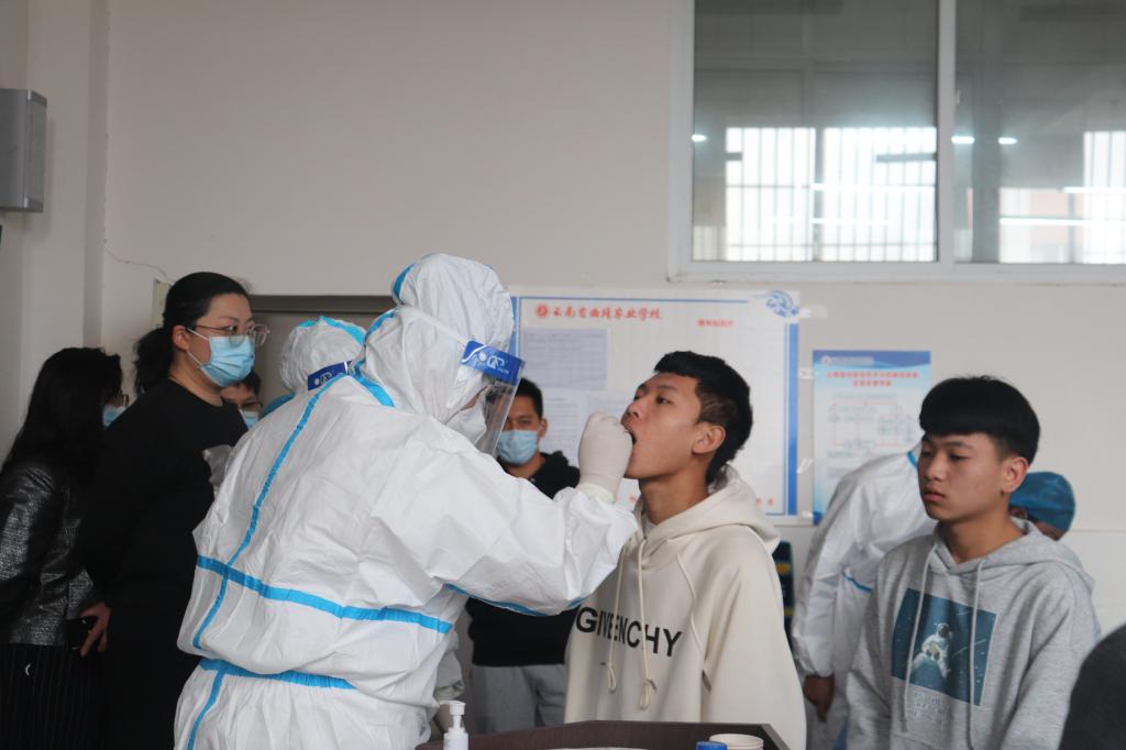 3月7日至8日,为确保开学校园教学工作有序安全,按照红河州、个旧市疫情防控要求,学院为返校学生进行了全员核酸检测。3月7日下午,个旧市妇幼保健院医生接到学院邀请后,精心筹备,身着防护服,准时来到学院。检测工作根据学院教学楼布局,医护人员分为五个组,在工作人员引领下,采取分楼层、分班级的方式进行。经过各方通力配合,截止3月8日中午,学院已全部完成返校学生核酸检测工作