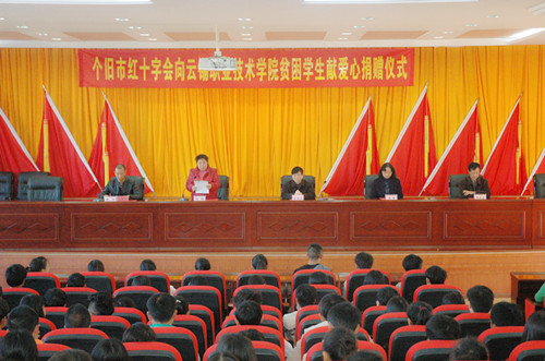 个旧市红十字会举行向职业学院“献爱心”捐赠仪式