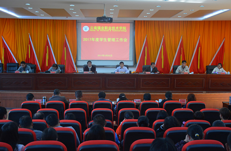 3月20日下午16:20分,职业学院在学院508报告厅召开“2017年度学生管理工作会”。学院领导班子成员、各部门负责人以及全体教职工参加会议,会议由学院副院长陈国华主持。 会上,学生处处长曹友雷从加强学生思想政治工作教育、加强规章制度建设、搞好日常管理基础性工作、开启心理健康素质教育、规范日常管理、完善扶贫助学体系六个方面对2016年学生管理工作情况及2017年学生管理工作计划进行了汇报。 学院纪委书记李蕾针对2...