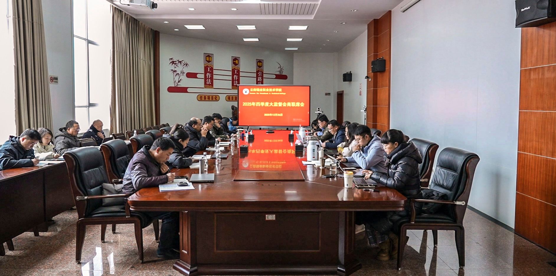 12月26日,学院纪委召开2025年四季度大监督会商联席会,总结前三季度工作成效,分析当前形势,研判四季度重点领域风险隐患,推动“清廉学校”建设走深走实。