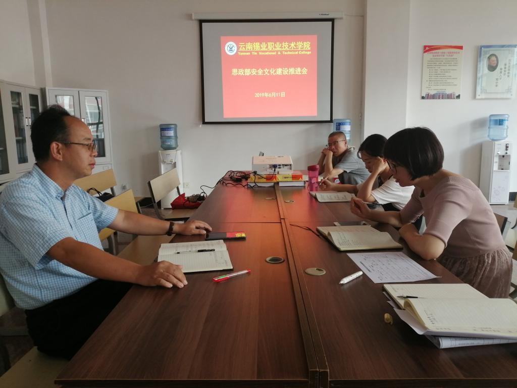 2019年6月11日星期二下午四点二十分,学院党委书记张鹏到思政部办公室主持召开了思政部安全文化建设工作推进会。思政部全体教师参加会议。思政部副主任李鸿对思政部安全文化建设工作开展情况进行了汇报。张鹏认真听取了汇报,对思政部安全文化建设工作取得的成效给予了充分的肯定。张鹏强调,安全文化建设工作是学院改革发展中的一件大事,安全责任重于泰山,容不得半点马虎。张鹏希望,思政部全体教师要深刻认识到安全文化建设...