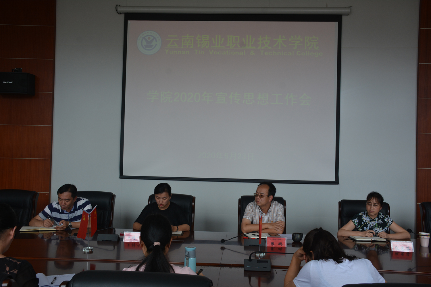 6月23日下午,学院在3号教学楼中会议室召开2020年宣传思想工作会,深入贯彻落实习近平总书记关于宣传思想工作的重要论述和习近平总书记考察云南省时的重要讲话精神,贯彻落实陈豪书记调研云锡时的讲话精神,贯彻落实全国全省宣传部长会议精神和控股公司宣传思想工作会精神,总结工作、分析形势,研究部署下一步宣传思想工作。学院党委书记张鹏作会议总结讲话,党委副书记刘青主持会议,领学了《中国共产党宣传工作条例》,宣读...