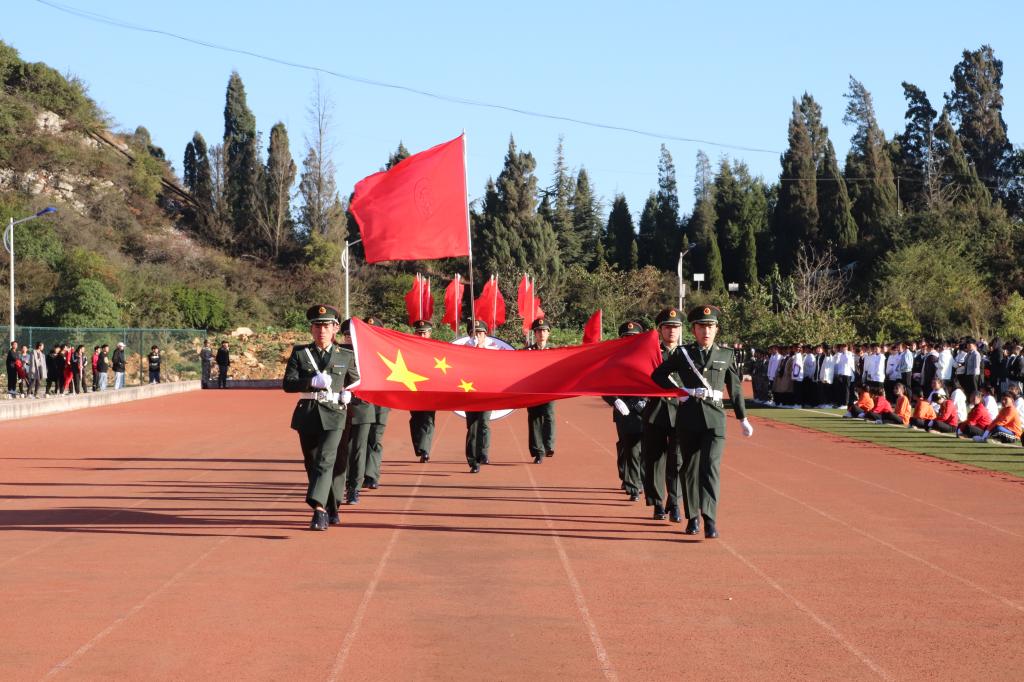 杲杲冬日,万里无云。12月9日,学院2020年第十四届冬季田径运动会在运动场隆重开幕。学院院长李蕾致开幕词,党委书记张鹏宣布田径运动会开幕,副院长曲向哲主持开幕式,纪委书记高志明、副院长张惠芬、曲靖农校负责人何志明等出席开幕式。热闹新颖的入场式,是广大师生们早早准备的成果。解说员宣布标兵就位,国旗护卫队、校旗队、红旗方队、四家二级学院代表队、广播体操展演方队依次入场。一个个整齐的方队踏着一致的步伐,在...